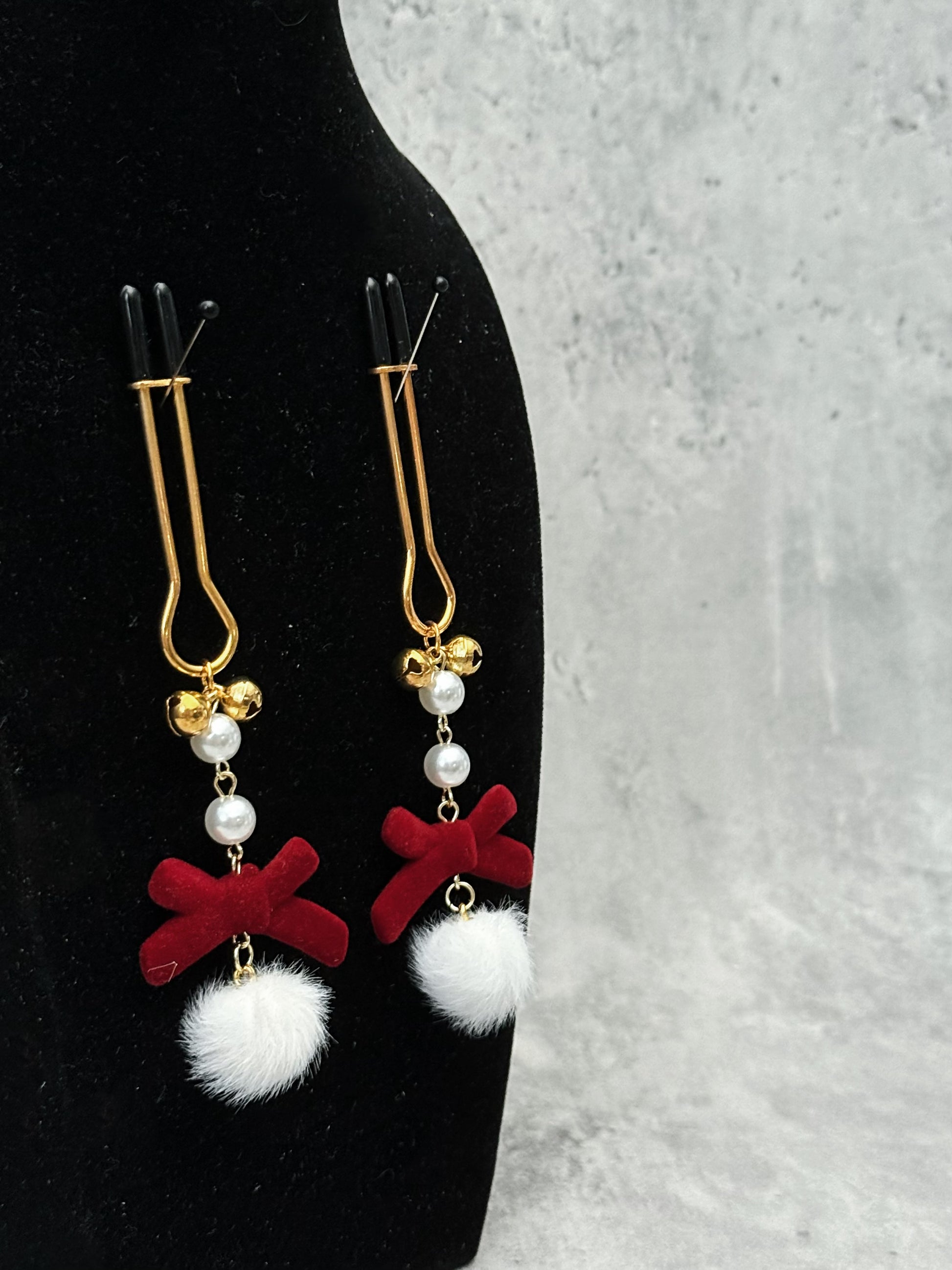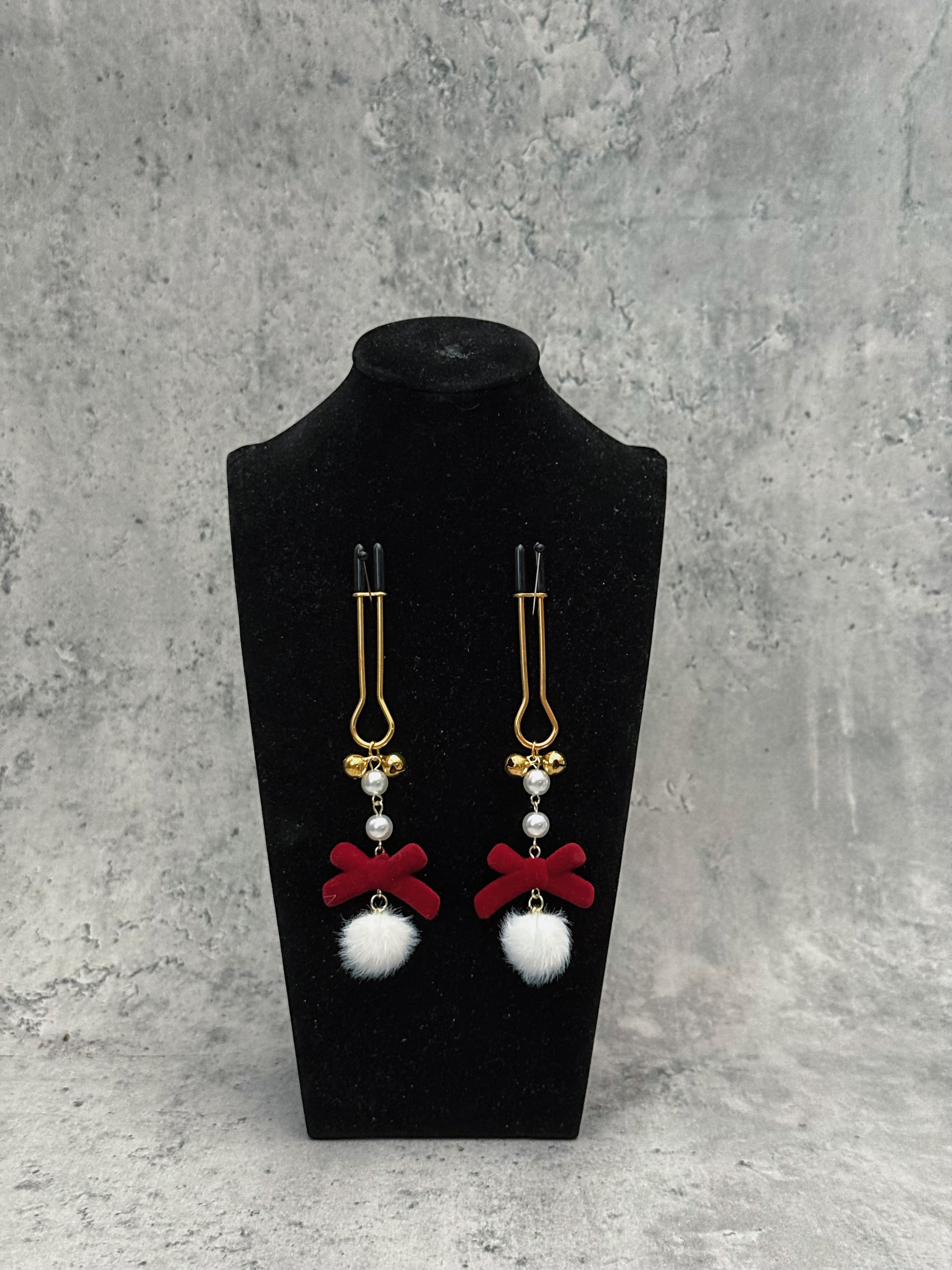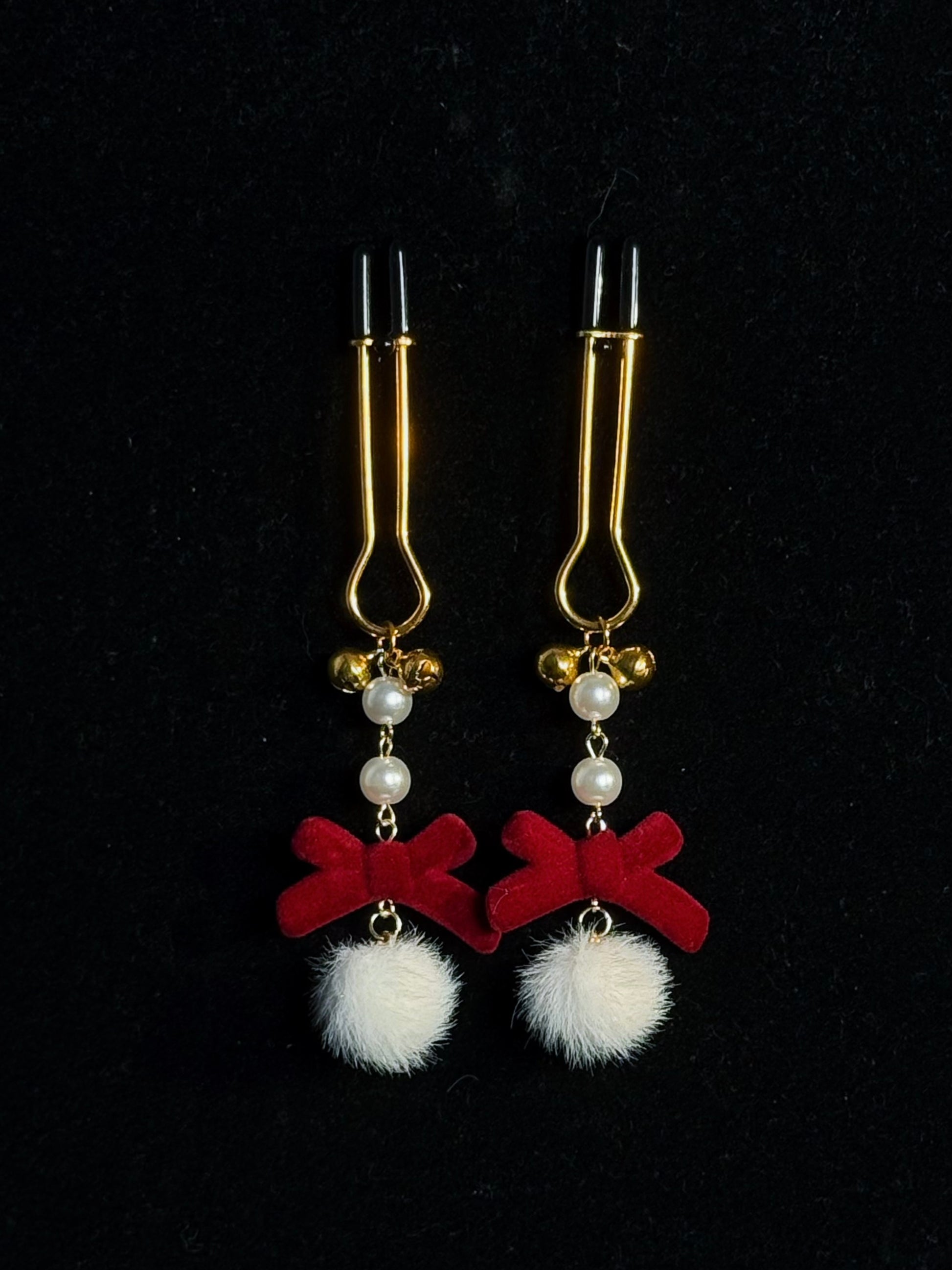 REVERIEE Bow Nipple Clamps with Fluffy Ball Pendant