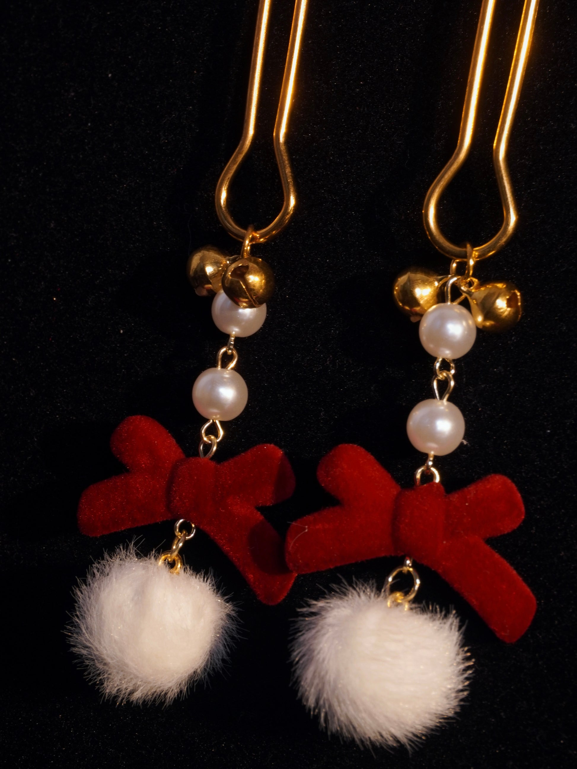 - Cute bow design with soft fluffy ball pendant for a playful, stylish look
