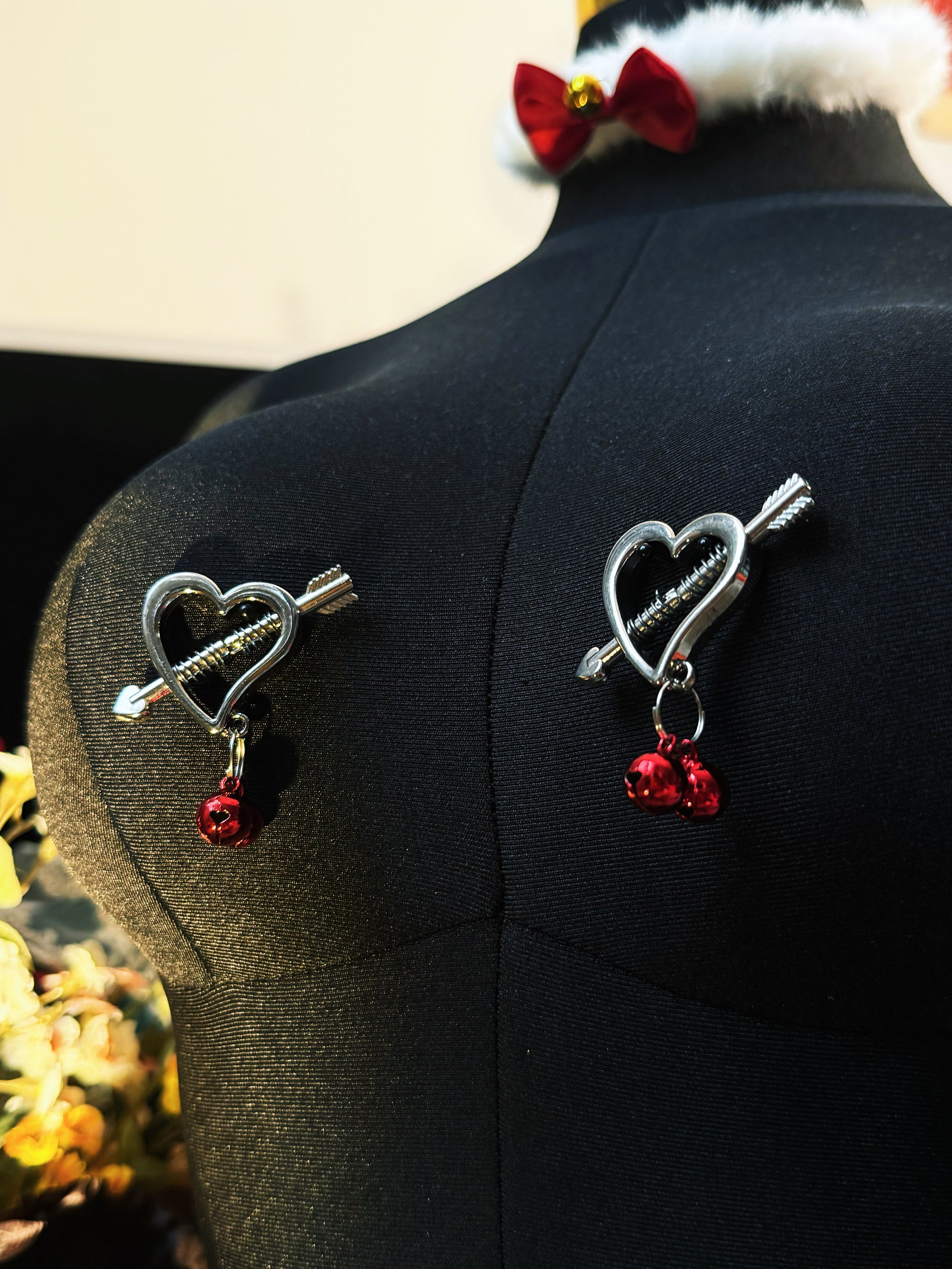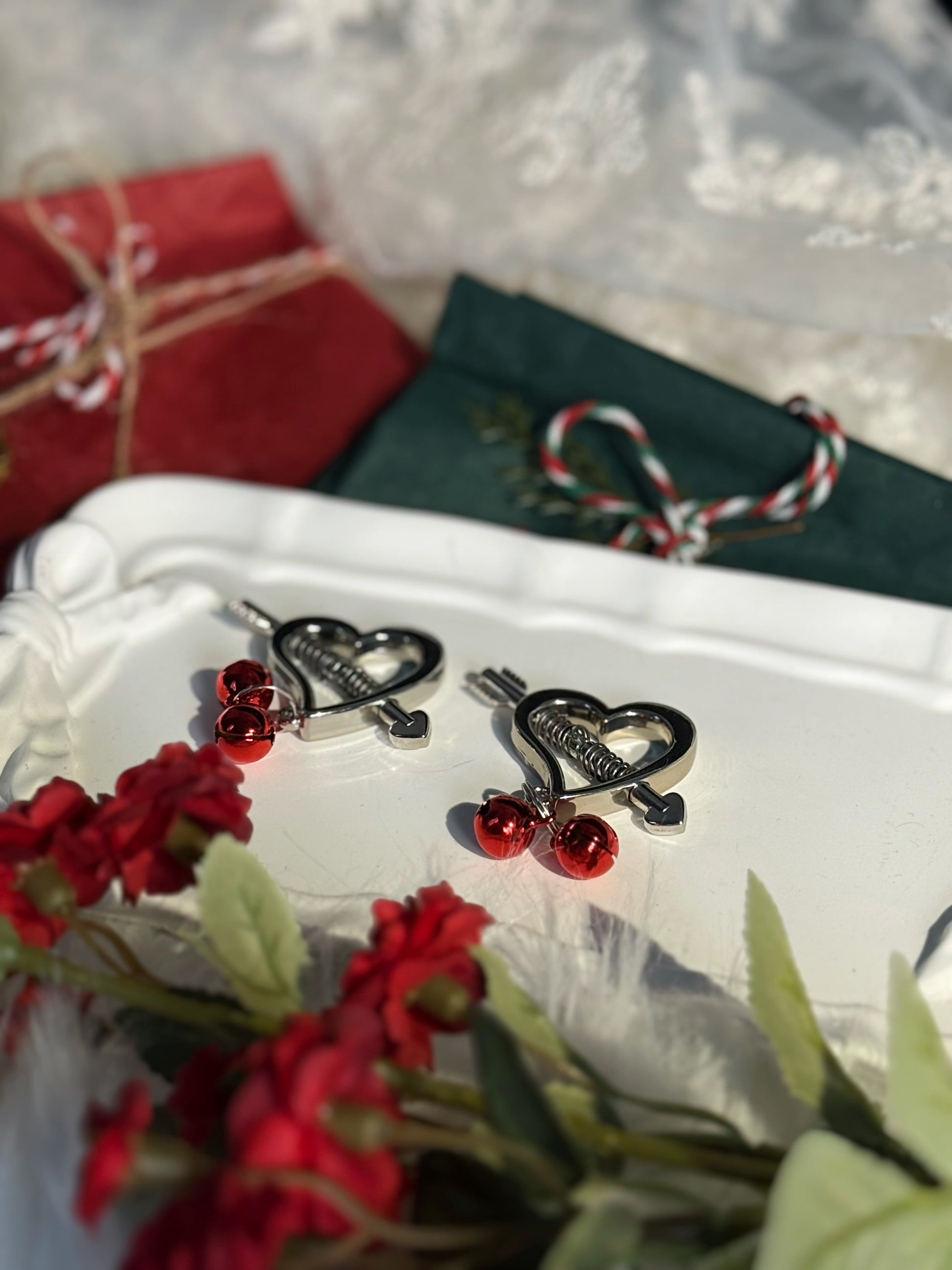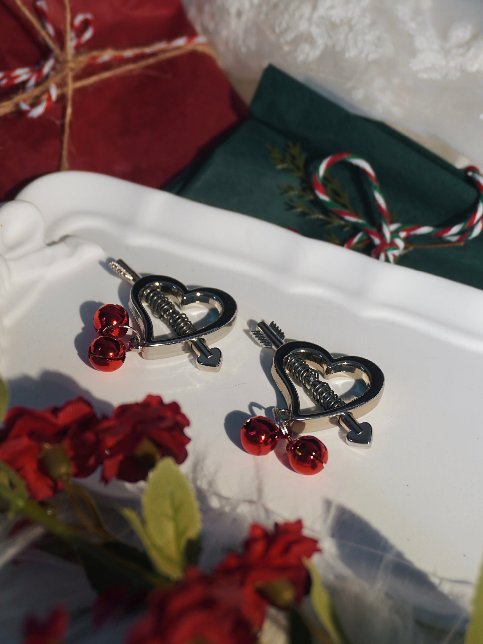 Reveriee Cupid’s Blade Nipple Clamps | Stainless Steel Clamps with Red Jingle Bells