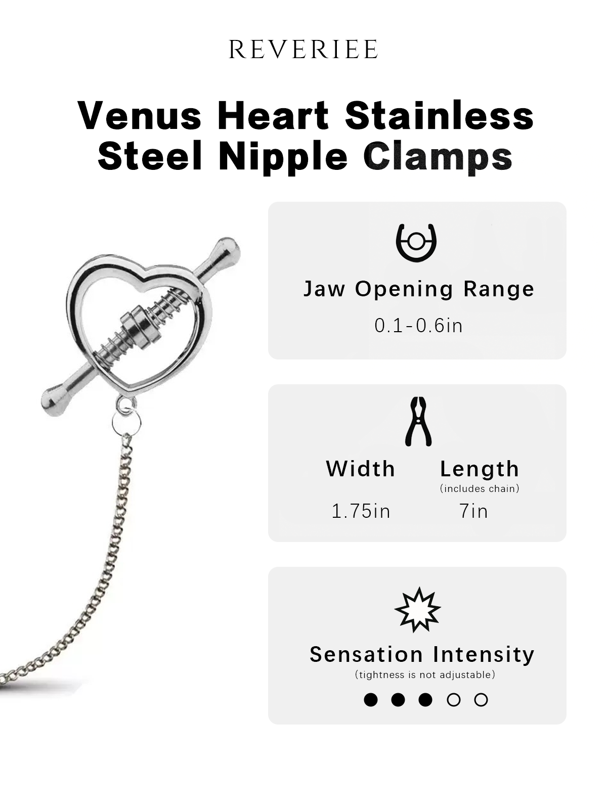Reveriee Venus Heart Chain Nipple Clamps | Stainless Steel Spring Clamps